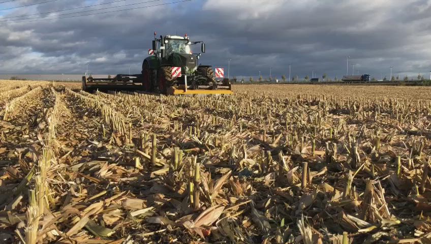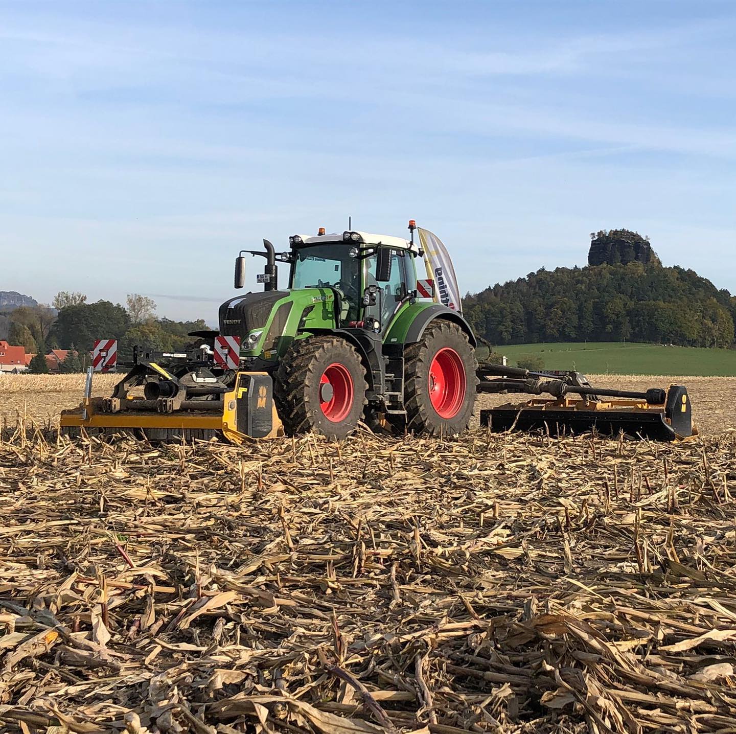 Die Überfahrt der Ernterückstände erfolgt erst nachdem diese durch den Frontmulcher erfasst wurden.